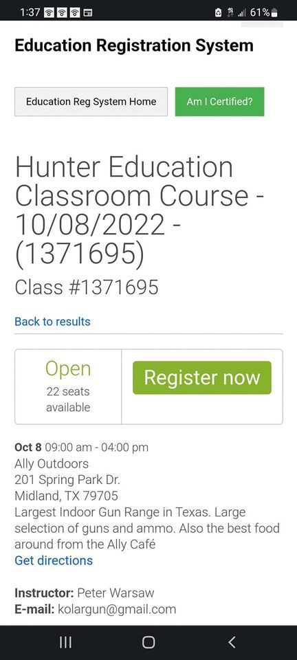 Hunter Education Class | Ally Outdoors, Midland, TX | October 8, 2022